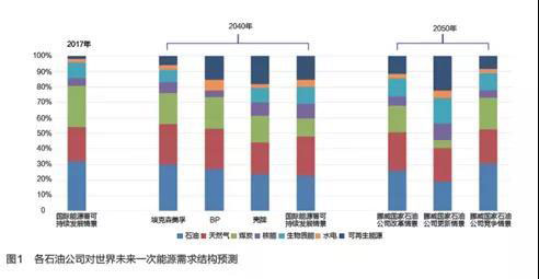 一些石油公司對(duì)全球未來(lái)一次能源需求結(jié)構(gòu)進(jìn)行了預(yù)判。