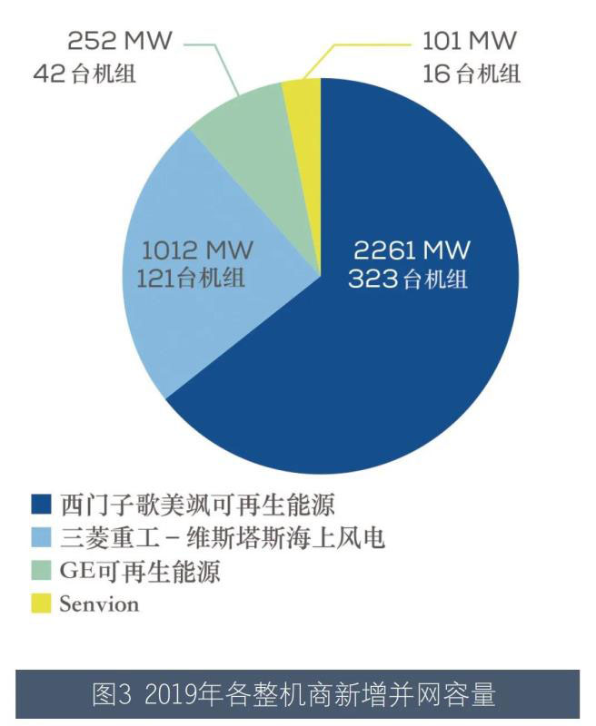 西門子歌美颯可再生能源( 簡(jiǎn)稱“SGRE”)2019 年的新增并網(wǎng)容量占全歐洲的62%,為英國(guó)HornseaOne、Beatrice 2、East AngliaOffshore 1 三個(gè)海上風(fēng)電場(chǎng)和德國(guó)的EnBW Albatros、Hohe See 兩個(gè)海上風(fēng)電場(chǎng)共計(jì)提供了323 臺(tái)SWT-7.0-154 機(jī)組。2020 年,該公司將在比利時(shí)的Mermaid 和Sea Star windfarm 兩個(gè)海上風(fēng)電場(chǎng)安裝新型機(jī)組SG 8.4-167 DD。此外,其于2019 年11 月推出的SG 193-10MW 機(jī)組,計(jì)劃于2022―2023 年實(shí)現(xiàn)商業(yè)化應(yīng)用。
