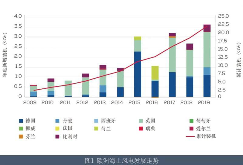 2019 年,歐洲海上風(fēng)電產(chǎn)業(yè)備受關(guān)注。國(guó)際能源署(IEA)發(fā)布的“2019年海上風(fēng)電展望”顯示,到2040 年,海上風(fēng)電有望成為歐洲的主要電力來(lái)源,在地區(qū)實(shí)現(xiàn)碳中和過(guò)程中發(fā)揮關(guān)鍵作用。(摘編自O(shè)ffshore Wind in Europe Key trends and statistics 2019)CWEA