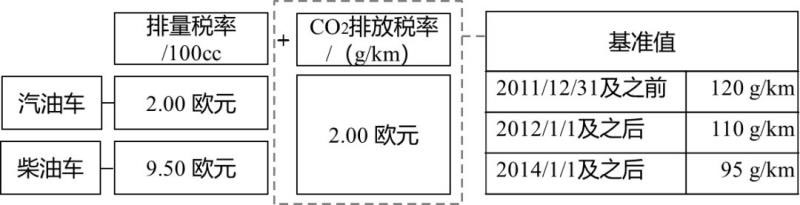德國(guó)機(jī)動(dòng)車稅為保有稅,車主需每年繳納,目前計(jì)稅依據(jù)為發(fā)動(dòng)機(jī)類型、發(fā)動(dòng)機(jī)排量、CO?排放量,其中由發(fā)動(dòng)機(jī)排量決定的稅額(汽油車2歐元/100cc)與CO?排放量決定的稅額(高于基準(zhǔn)值的部分,每公里CO?排放量每增加1g需額外支付2歐元)相互獨(dú)立,二者之和為車主所需繳納的最終稅額。首次注冊(cè)于2009年7月1日至2011年5月17日的純電動(dòng)汽車免征5年機(jī)動(dòng)車稅,對(duì)于2011年5月18日至2020年12月31日期間注冊(cè)的純電動(dòng)汽車免征10年機(jī)動(dòng)車稅。2021年起,依據(jù)重量分段累進(jìn)對(duì)純電動(dòng)汽車征稅(11.25~12.78歐元/200kg),為繼續(xù)鼓勵(lì)節(jié)能減排,減按50%征收。