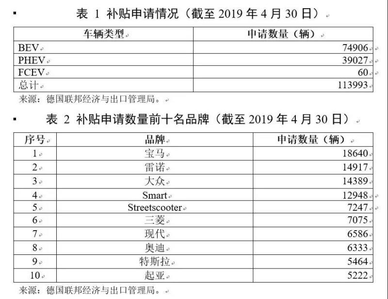 2.政府和企業(yè)共同出資12億歐元為電動(dòng)汽車提供購(gòu)置補(bǔ)貼。2016年4月,德國(guó)政府首次發(fā)布購(gòu)置補(bǔ)貼政策(又稱“環(huán)境獎(jiǎng)金”)。純電動(dòng)汽車(BEV)和燃料電池汽車(FCEV)單車補(bǔ)貼額為4000歐元,插電式混合動(dòng)力汽車(PHEV)單車補(bǔ)貼額為3000歐元,其中聯(lián)邦政府承擔(dān)一半費(fèi)用(即每輛車2000歐元或1500歐元);汽車產(chǎn)業(yè)界(即申請(qǐng)車輛對(duì)應(yīng)的汽車制造商)承擔(dān)另一半費(fèi)用。可以獲得補(bǔ)貼的產(chǎn)品,應(yīng)納入《符合要求的電動(dòng)汽車目錄》,具體包括乘用車、3.5噸及以下載貨車輛、持B駕照可駕駛的12噸及以下載貨車輛。其中,PHEV每公里CO?排放量不得超過(guò)50g。對(duì)于其他驅(qū)動(dòng)方式的車輛,若其運(yùn)行過(guò)程中不排放CO?,則享受BEV補(bǔ)貼待遇;若其運(yùn)行時(shí)每公里CO?排放量不超過(guò)50g,則享受PHEV補(bǔ)貼待遇。德國(guó)補(bǔ)貼政策還對(duì)車輛價(jià)格進(jìn)行了限制,車價(jià)超過(guò)6萬(wàn)歐元被視為奢侈消費(fèi),不得享受補(bǔ)貼。截至2019年4月30日,累計(jì)共有11.4萬(wàn)輛車申請(qǐng)了該補(bǔ)貼。