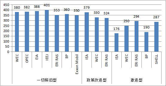 EIA展望的參考情景是指當前技術(shù)進步、經(jīng)濟發(fā)展和人口增長趨勢保持不變的情況。與EIA相似,OPEC、IEEJ、ExxonMobil展望中也引入了參考情景,并將之作為主要分析情景。