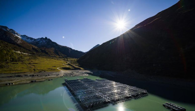 中國(guó)儲(chǔ)能網(wǎng)訊:當(dāng)?shù)貢r(shí)間10月8日,瑞士Bourg-Saint-Pierre,工人在高山水庫(kù)湖圖勒湖(Lac des Toules)上組裝帶有太陽(yáng)能電池板的駁船。當(dāng)?shù)卣趫D勒湖上鋪設(shè)漂浮太陽(yáng)能電池板站,該電池板站由36艘駁船組成,共將放置2240平方米的太陽(yáng)能電池,其目標(biāo)是每年輸送800000千瓦時(shí)的電力,這相當(dāng)于約220戶家庭的年耗電量。圖片來(lái)源:IC photo