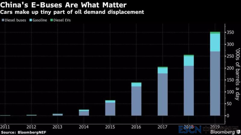 具體而言,公路上1000輛電動(dòng)公交車每天可以替代500桶燃油;相比之下,1000輛電動(dòng)汽車僅替代15桶燃油/天。根據(jù)彭博新能源財(cái)經(jīng)最新報(bào)告估計(jì),截至2019年底,電動(dòng)公交車每天將可以替代27萬桶燃油(大部分是在中國),這是全球所有電動(dòng)乘用車(特斯拉擁占12%)所能替代燃油的三倍。