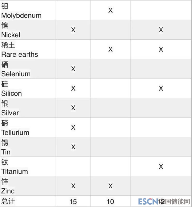 總結(jié)一下,太陽能技術(shù)對(duì)于各種金屬材料依賴較大(15種);其次是電動(dòng)汽車/儲(chǔ)能(12種)、風(fēng)能(10種)。也就是說,太陽能、儲(chǔ)能相關(guān)技術(shù)對(duì)于金屬材料的依賴使得其較受地理政治(金屬材料資源分布)的影響,風(fēng)能技術(shù)受地理政治影響相對(duì)比較小。