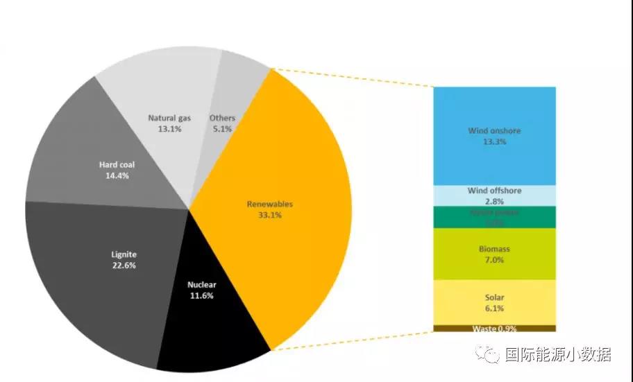 ——2017年德國發(fā)電量中的33%來自可再生能源能源,比上一年增長4個百分點。