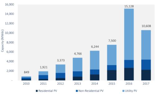 2017年美國光伏新增裝機10.6GW 同比下降10%