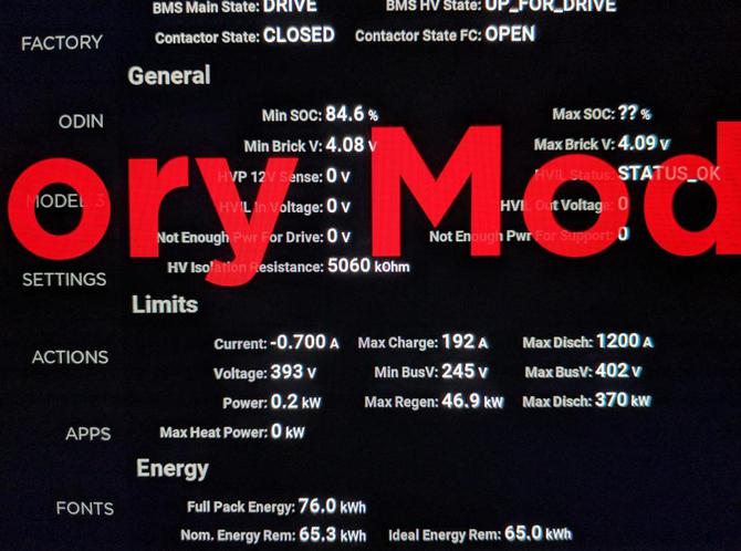 “工廠模式”是特斯拉車載軟件的一個(gè)版本,用于車輛的最終測(cè)試及出廠發(fā)貨前的性能診斷。該模式擁有一個(gè)工具箱界面,可顯示與動(dòng)力總成相關(guān)的參數(shù)信息。
