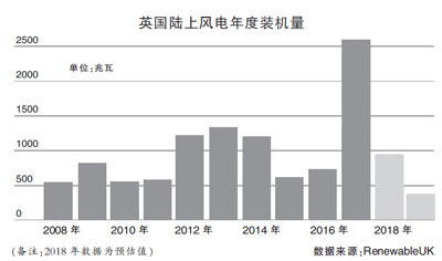 報(bào)告指出,去年,英國境內(nèi)總共安裝了2.6吉瓦的陸上風(fēng)力發(fā)電機(jī),相比2013年的紀(jì)錄高值幾乎翻了一番。但是,由于陸上風(fēng)電場不被允許參與申請補(bǔ)貼,預(yù)計(jì)今年,英國陸上風(fēng)電新增裝機(jī)量將降至0.94吉瓦;明年則將進(jìn)一步降至0.37吉瓦。