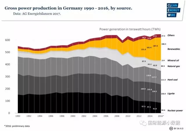 中國儲(chǔ)能網(wǎng)訊:德國施行能源轉(zhuǎn)型戰(zhàn)略以來,核能比例不斷下降,以穩(wěn)定的煤電來支撐可再生能源比例快速上升。
