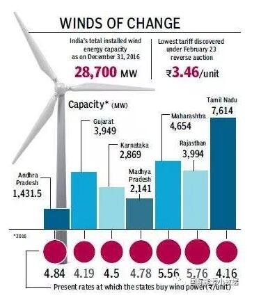 這樣,風(fēng)電的最低報價已接近太陽能光伏今年5月創(chuàng)下的最低報價紀錄(2.44盧比/千瓦時,約合3.8美分/千瓦時),而且明顯低于目前煤電的成本(3.20盧比/千瓦時,約合美分4.9美分/千瓦時)。