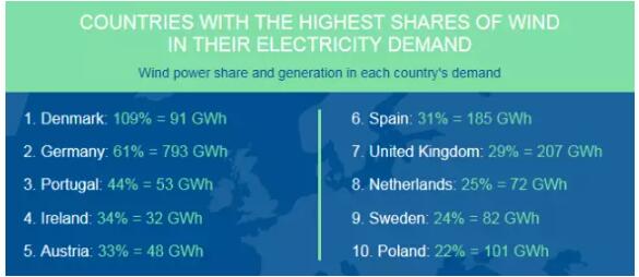 當(dāng)天下午,歐洲風(fēng)電單小時(shí)發(fā)電量最高達(dá)到8990萬(wàn)千瓦時(shí),也打破了原來(lái)的紀(jì)錄。按國(guó)家來(lái)統(tǒng)計(jì),德國(guó)3910萬(wàn)千瓦時(shí)、波蘭510萬(wàn)千瓦時(shí)、挪威90萬(wàn)千瓦時(shí)也都創(chuàng)造了本國(guó)單小時(shí)風(fēng)電發(fā)電量新高。