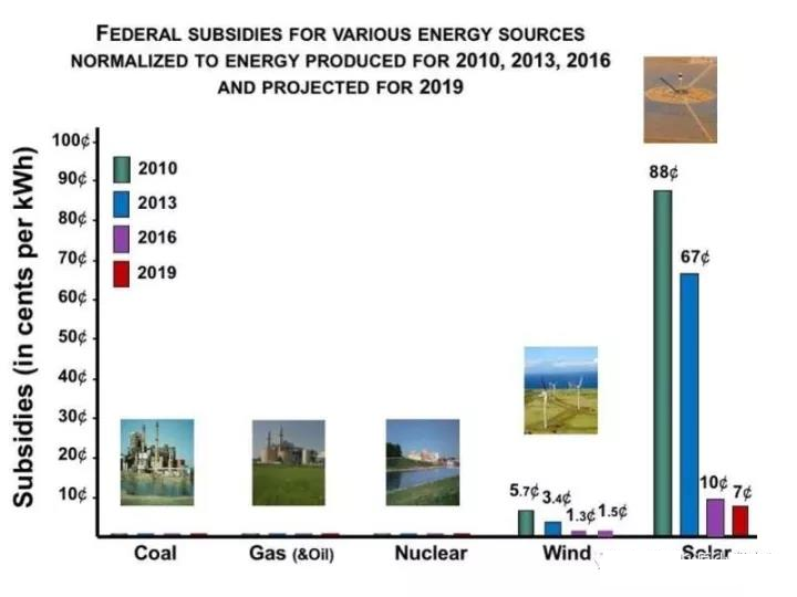 值得注意的是,事實(shí)上美國(guó)聯(lián)邦政府對(duì)于煤、天然氣和核電也有少量補(bǔ)貼,大約在0.05-0.2美分/千瓦時(shí)。
