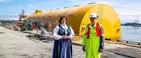 圖2:第一座浮塔水下結(jié)構(gòu)于2017年5月17日到達挪威的組裝廠