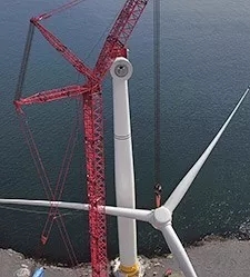 圖3:直徑154米的風機葉片被吊裝到風塔上