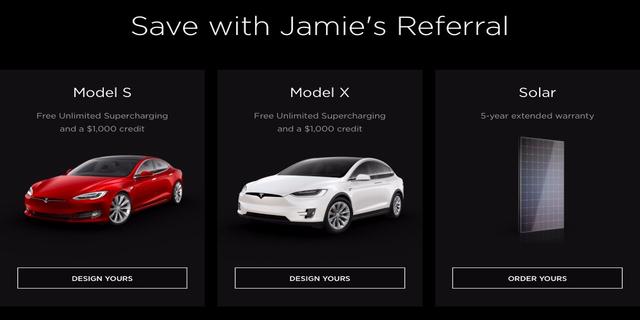 反過來也是一樣。特斯拉Model S或Model X的車主可以向一位特斯拉太陽能新客戶推薦安裝太陽能電池板。
