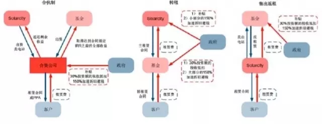 通過(guò)利用政府補(bǔ)貼背書(shū)和用戶(hù)購(gòu)電合同,SolarCity對(duì)基金投資者推出了光伏發(fā)電稅收投資模式,主要以合資和轉(zhuǎn)租模式為主,豐富融資渠道以解決現(xiàn)金流分布不均的問(wèn)題。在2008年4月至2013年5月的五年間,SolarCity通過(guò)這種新型融資模式從包括Google、美林銀行、高盛在內(nèi)的11家投資者融資超過(guò)30億美元。