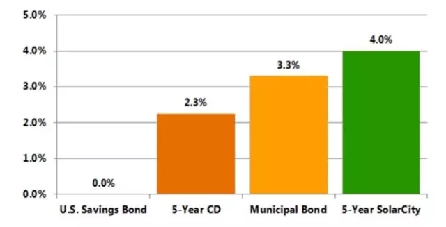 除企業(yè)和機(jī)構(gòu)投資者外,SolarCity也在重新定義私人投資者融資模式。2013年底,SolarCity通過(guò)以現(xiàn)有的68000個(gè)用戶(hù)合同為擔(dān)保,發(fā)行太陽(yáng)能債券融資5440萬(wàn)美元,提前將未來(lái)收益變現(xiàn)。