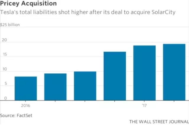 去年秋季收購(gòu)SolarCity之后,第四季度特斯拉負(fù)債同比增長(zhǎng)了60%多。截至今年二季度末,特斯拉的總負(fù)債已經(jīng)接近200億美元,二季度凈虧損3.36億美元,較上年同期擴(kuò)大14.7%。