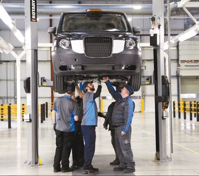 中國儲能網(wǎng)訊:近年來,國際汽車制造商紛紛瞄準(zhǔn)了英國電動汽車市場,吉利商用車集團(tuán)旗下的倫敦出租車公司考文垂安斯蒂工廠今年3月正式落成。圖為當(dāng)?shù)毓と嗽谲囬g檢查一款電動出租車。