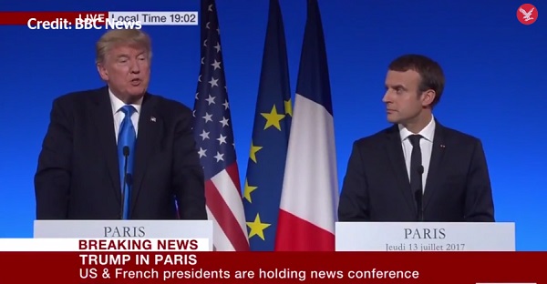 川普在今年6月初履行競選承諾,宣布美國退出巴黎協(xié)定,與國際主流立場背道而馳。馬克宏在記者會中提到,與川普雙方在巴黎協(xié)定議題上意見分歧,但是他尊重川普在能源和環(huán)境政策上的決定,同時也強(qiáng)調(diào)法國將堅守協(xié)定。不過,川普的態(tài)度似乎有些軟化,“關(guān)于巴黎協(xié)定也許會有些變動,我們會再持續(xù)討論,”他語帶保留地表示,“如果有變動,那會是好事;如果沒有變動,那也沒關(guān)系”。這樣的說法也給了外界不少想像空間。