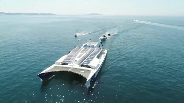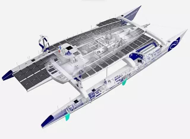 據(jù)介紹,"能源觀察者"號使用太陽能、風(fēng)能和氫能作為混合動力。航行中,它主要依靠太陽能驅(qū)動電動馬達,在太陽能和風(fēng)能不充足的時候,它則將海水中的水分子分解成氫燃料,實現(xiàn)溫室氣體零排放的目標(biāo)。