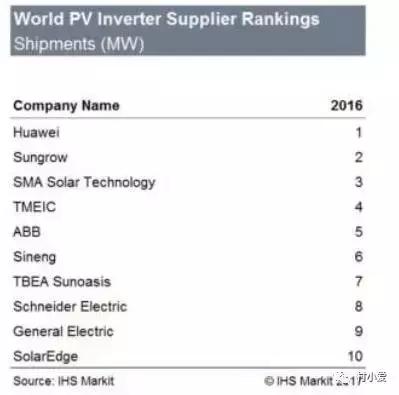 2016年全球光伏逆變器企業(yè)出貨量排行