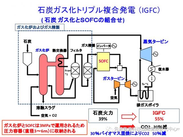 第三階段:配備碳捕集的IGFC發(fā)電系統(tǒng)設計、建設和實證研究。計劃于2018年啟動,增加燃料電池聯合發(fā)電單元,旨在2025年左右開發(fā)大型商業(yè)化IGFC技術,目標是使凈熱效率達到55%,單位CO2排放量減少到590gCO2/kWh左右(比目前降低30%左右)。
