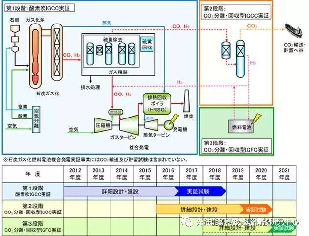 NEDO“煤氣化燃料電池聯合循環(huán)發(fā)電(IGFC)實證事業(yè)”于2012年啟動,分為三個階段: