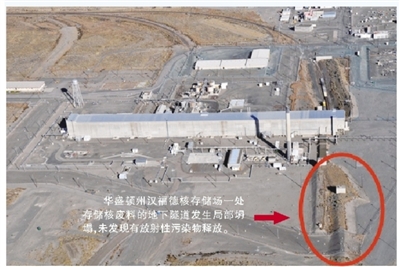 5月9日早上,位于華盛頓州漢福德核存儲場一處存儲核廢料的地下隧道發(fā)生局部坍塌,導(dǎo)致隧道上方約37平方米的土壤下沉了0.6米至1.2米。發(fā)生坍塌的隧道是通往鈾钚提取設(shè)施(PUREX)的兩條隧道之一,坍塌部分位于兩條隧道的交匯處。