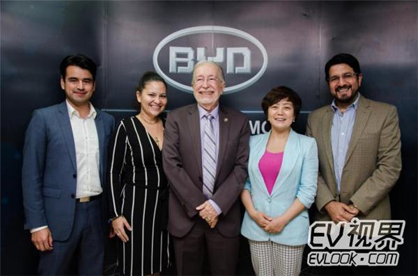 厄瓜多爾國(guó)家工業(yè)生產(chǎn)部部長(zhǎng)Santiago León先生(右一),比亞迪高級(jí)副總裁李柯女士(右二)與參會(huì)嘉賓合照