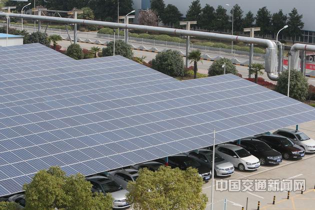 江蘇南京太陽(yáng)能光伏停車(chē)棚。徐琦 攝