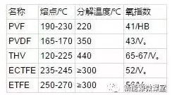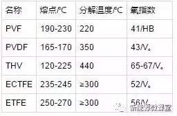 各個(gè)氟塑料薄膜對(duì)水汽的阻隔能力不同,其中以ECTFE為最優(yōu)。使用同樣厚度為100μm的薄膜,在氣溫40℃和濕度95%的條件下,PVF每天每平米的水汽透過率超過10~20g,PVDF為2g左右,而常用的PET不超過10g。據(jù)多數(shù)供應(yīng)商提供的數(shù)據(jù),采用氟塑料薄膜和PET薄膜復(fù)合成的背板,其水汽阻隔性能小于2g。表1為各種氟材料的特性。