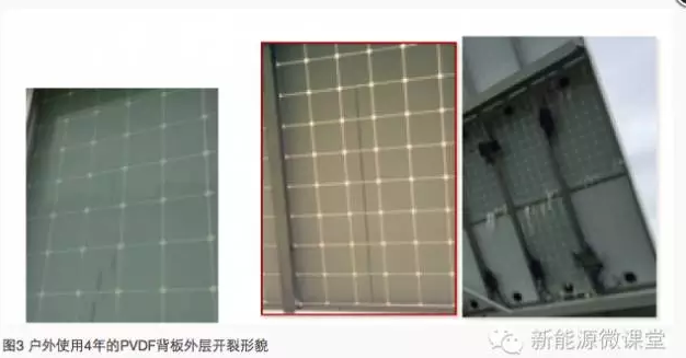 由于背板的結(jié)構(gòu)為多層復(fù)合,所以在自然環(huán)境中經(jīng)過長時(shí)間的使用后,保持其各層性能與粘結(jié)層的效果十分重要。依據(jù)IEC標(biāo)準(zhǔn),光伏電池背板必須進(jìn)行耐紫外老化、雙85、濕凍等試驗(yàn),測(cè)試其耐老化性能。