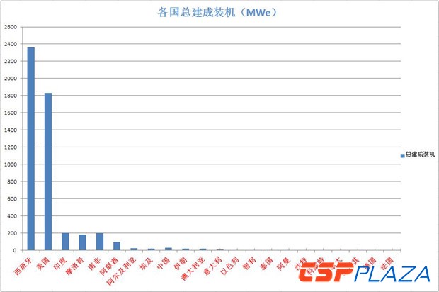 圖:各國總CSP建成裝機(jī)圖(制圖:CSPPLAZA)