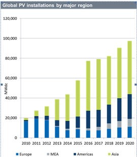 中國(guó)儲(chǔ)能網(wǎng)訊:2016年12月19日,IHS Markit(倫敦,英國(guó))發(fā)布報(bào)告顯示,中國(guó)市場(chǎng)強(qiáng)勁需求將推動(dòng)全球光伏市場(chǎng)連續(xù)增長(zhǎng)十年。