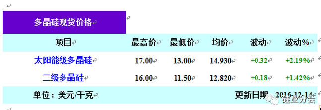 中國(guó)儲(chǔ)能網(wǎng)訊:本周國(guó)內(nèi)多晶硅現(xiàn)貨價(jià)格繼續(xù)回升,太陽(yáng)能一級(jí)致密料報(bào)價(jià)區(qū)間在13.1-14.0萬元/噸,均價(jià)為13.75萬元/噸,周環(huán)比增幅為0.88%。一級(jí)致密料成交價(jià)區(qū)間在13.1-14.0萬元/噸,均價(jià)為13.61萬元/噸,周環(huán)比漲幅為0.81%。本周進(jìn)口多晶硅主流報(bào)價(jià)13.00-17.00美元/千克,均價(jià)為14.93美元/千克,周環(huán)比漲幅為2.19%;156mm多晶硅晶圓報(bào)價(jià)0.62-0.70美元/片,均價(jià)降至0.634美元/片,周環(huán)比降幅為1.25%;156mm多晶硅電池片報(bào)價(jià)為0.85-1.28美元/片,均價(jià)下滑至0.996美元/片,周環(huán)比降幅為1.48%;晶硅太陽(yáng)能電池組件報(bào)價(jià)在0.32-0.45美元/瓦,均價(jià)下滑至0.379美元/瓦,周環(huán)比降幅為1.30%。