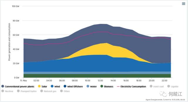 5月15日這一天可再生能源覆蓋比最高約為82%,曾有媒體報道這一天德國的可再生能源發(fā)電占比達(dá)到100%,agora曾對數(shù)據(jù)的偏差問題專門做了解釋。這一天也是個周末。