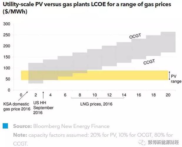 隨著光伏和風電系統(tǒng)成本的不斷下降,再加上能源補貼改革的助力,MENA經(jīng)濟體必須面對一個新的可再生能源與經(jīng)濟發(fā)展環(huán)境?,F(xiàn)階段,光伏電廠的發(fā)電成本要低于天然氣進口國內(nèi)的天然氣電廠(基本負荷運行下的)成本。即使是在沙特阿拉伯等燃料價格補貼豐厚的國家,光伏仍是應對峰值電力需求時最為經(jīng)濟的方式。