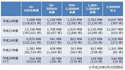 各年度的太陽能認(rèn)證數(shù)量和容量(出處:經(jīng)濟(jì)產(chǎn)業(yè)?。?