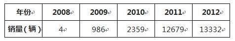 表12008-2012年日本電動汽車銷量統(tǒng)計