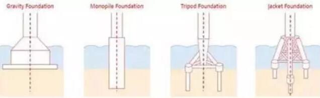 海上風電機組基礎結構的四種基本形式-適用范圍