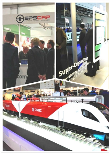 柏林是歐洲大陸的鐵路交通樞紐城市。九月下旬的軌交展吸引了ABB、西門子、龐巴迪、阿爾斯通、中車等知名軌交企業(yè)參展。中車展廳的看展觀眾非常多,中車與集星科技的合資公司寧波中車新能源打出了清潔綠色城市新能源解決方案的英文標(biāo)識。而集星科技與其合作伙伴作為展會唯一的超級電容解決方案參展商參加了該展會。