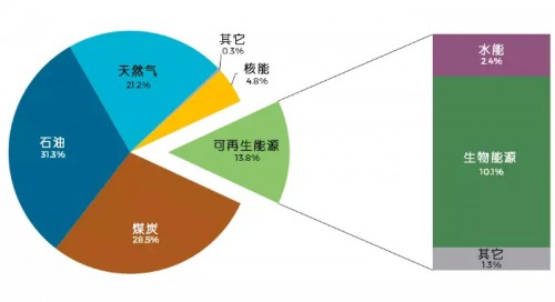 表1:2014年各類能源在全球主要能源供給總量中的占比