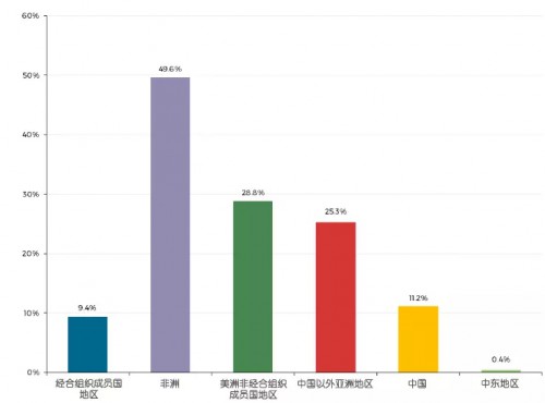 非經(jīng)合組織成員國地區(qū)約消費(fèi)可再生能源總量的3/4,反映出生物質(zhì)能(如木材)在家庭用能中的重要地位。非洲能源消費(fèi)中可再生能源約占一半,同時(shí)亞洲(除中國)與美洲非經(jīng)合組織成員國地區(qū)中可再生能源占比達(dá)1/4。然而在經(jīng)合組織成員國中,可再生能源在能源供給總量中占比僅9.4%。