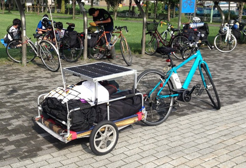 行駛使用的電動助力自行車和配備光伏發(fā)電系統(tǒng)的拖車(出處:Veranda de Solar開發(fā)項目)