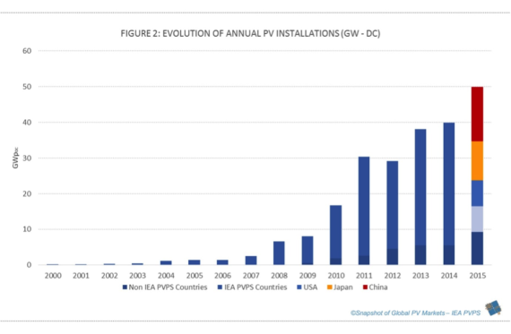整體而言,2009-2015年,世界太陽(yáng)能裝機(jī)容量增長(zhǎng)了10倍之多,2002-2015年,世界太陽(yáng)能裝機(jī)容量更是增長(zhǎng)了100倍以上。預(yù)計(jì)到2025年,全球太陽(yáng)能裝機(jī)容量將超過(guò)756吉瓦。