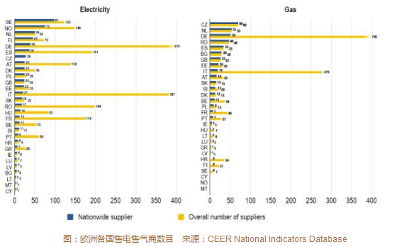 當我們在歐洲習慣了幾十個甚至幾百個供電商自由選擇的時候,也不忘苦笑批發(fā)市場上的電價下降仍然還沒有傳遞到終端電價,歐盟電力統(tǒng)一市場十多年前就在議程卻進程緩慢。