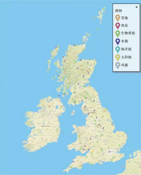 圖1 英國(guó)社區(qū)能源項(xiàng)目分布地圖(截至2016年3月)