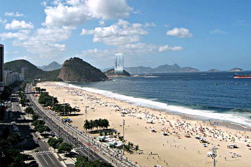 創(chuàng)新的太陽能瀑布塔——太陽能城塔,位于Cotonduba島上,作為2016年奧運會歡迎性的標(biāo)志建筑。這座105米高的塔能為整個奧運城市和里約部分地區(qū)提供能源。塔把海水泵高,再似秋千一樣令海水一瀉而下。高塔里面包括露天劇場,禮堂,餐廳,精品店,頂樓觀景臺能看到360度的美景。想要尋求刺激的人還可以在這里蹦極!
